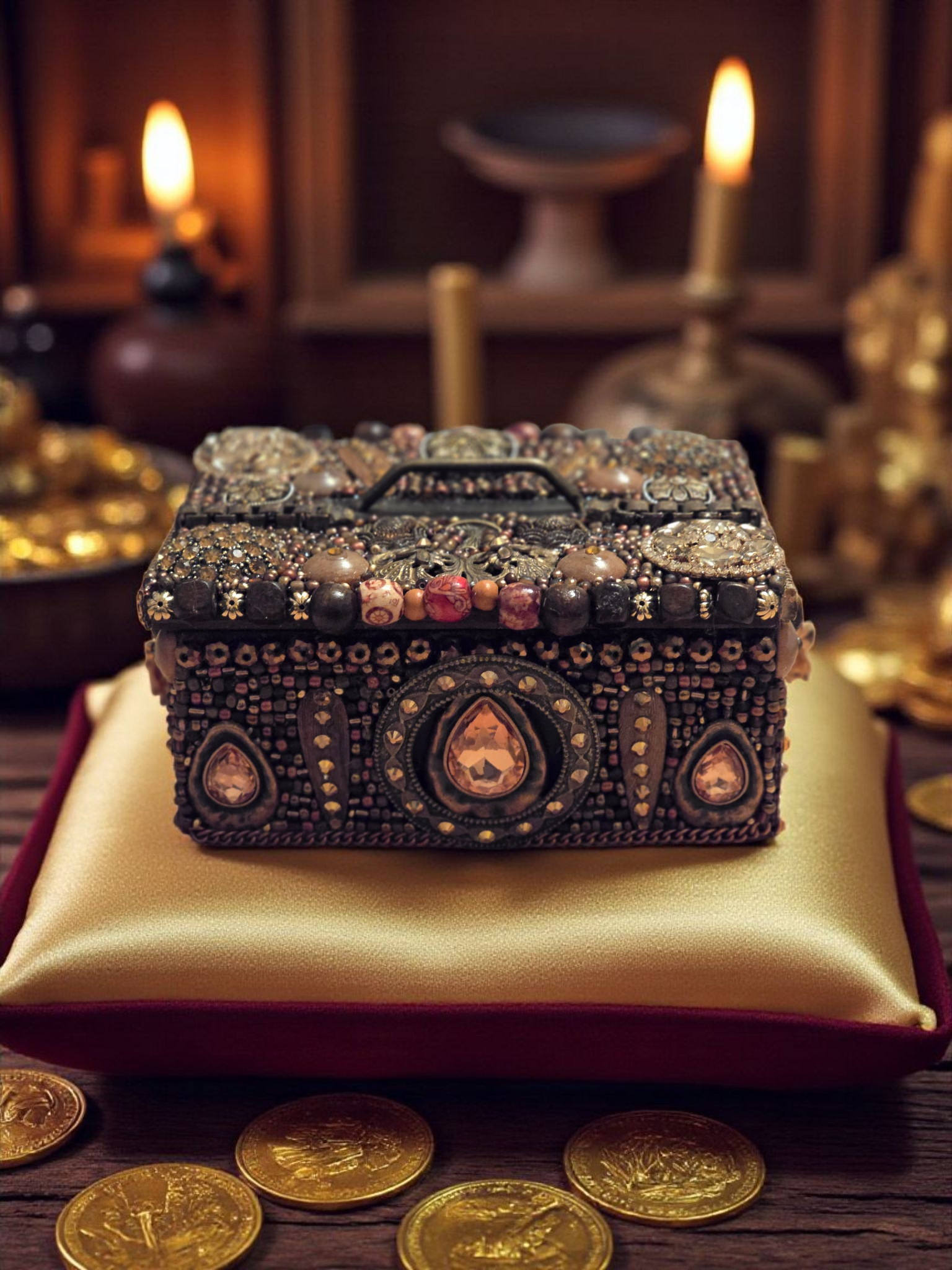 This gorgeous one of a kind Memory Box is great for keeping keepsakes, glasses, keys and everyday life's trinkets and accessories. These vibrant boxes are custom decorated on all sides (including the inside bottom base). The insides can be decorated with mosaic stones. Hand painted and hand beaded so the colors will vary throughout the design with a metal handle. Great conversation piece for the home or office. (Pictured box design are customers personal ideas and colors). The price varies depends on the size box. This box dimensions are 6.38x4.72x3.43 inches