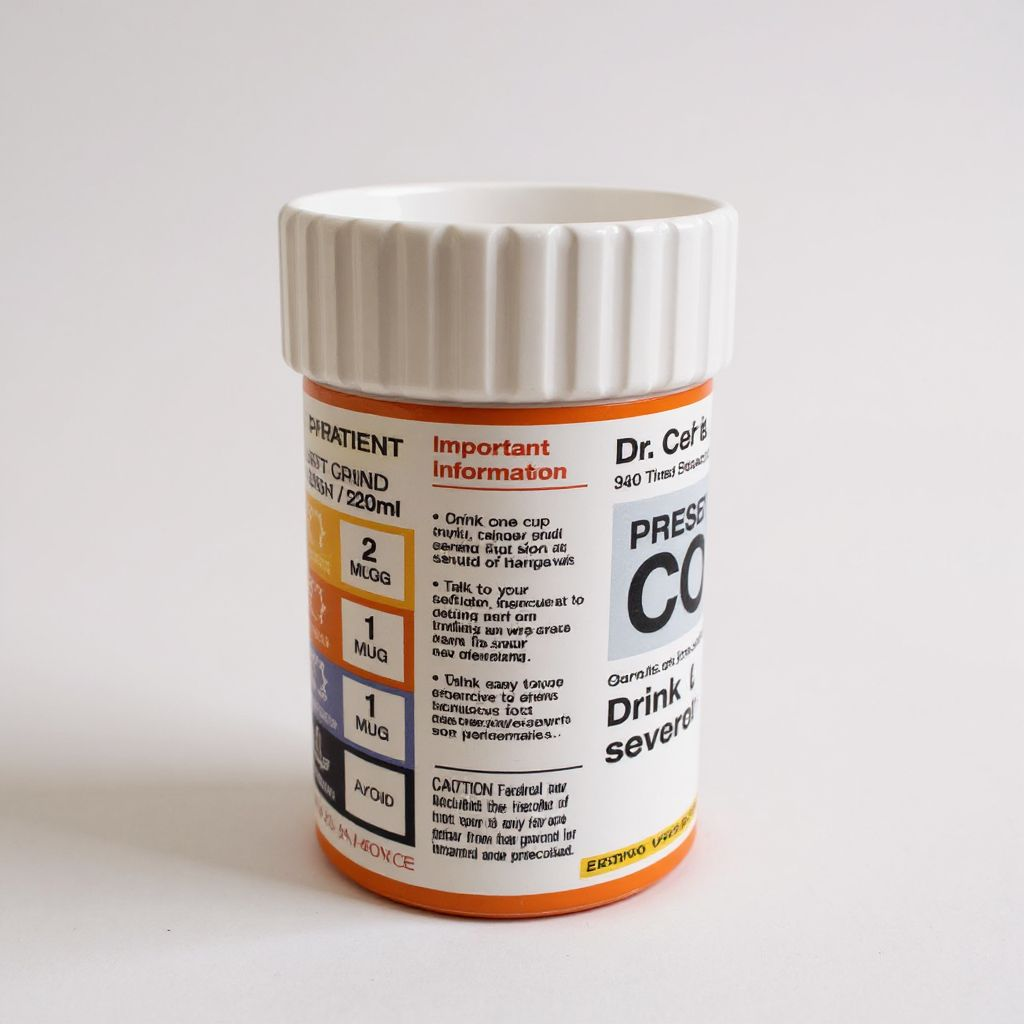 This unique upcycled coffee mug is just what the doctor ordered. Its 17.5 ounces of pure coffee bliss. Dr. Caf E. Naddict states you should drink 1 mug orally several times per day. I couldnt agree more. It’s perfect for gift giving, or office coffee breaks. 6"x4" inches high and wide.