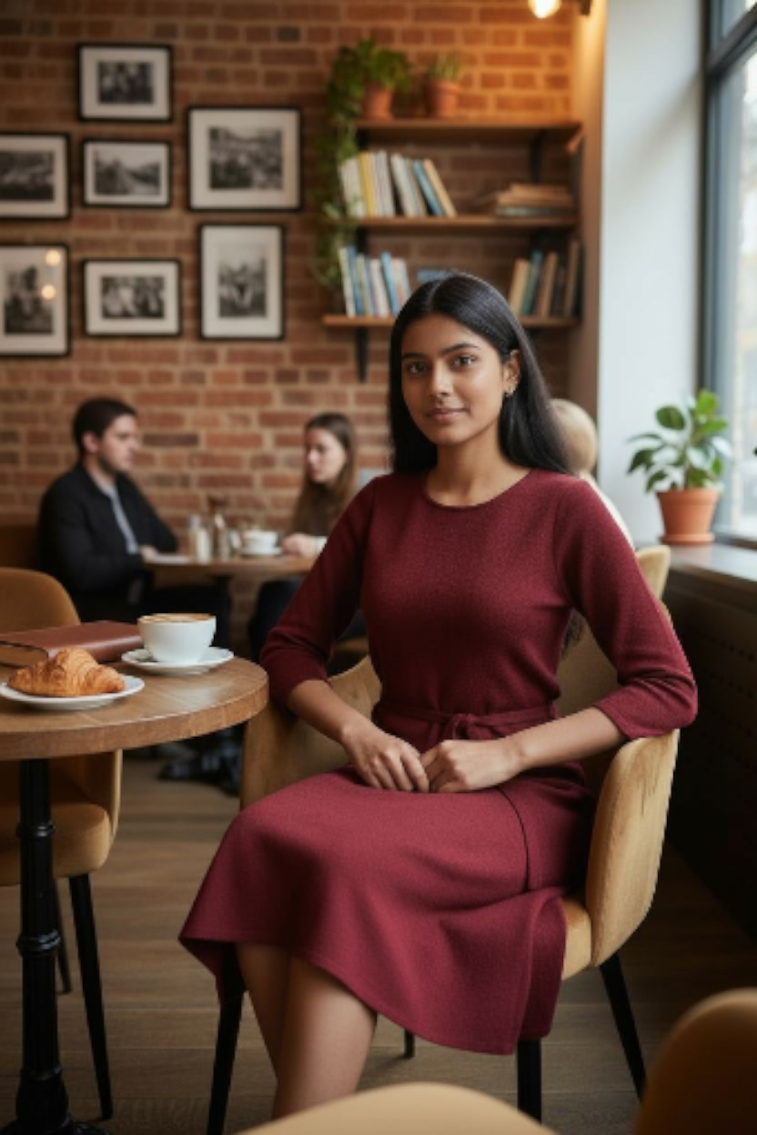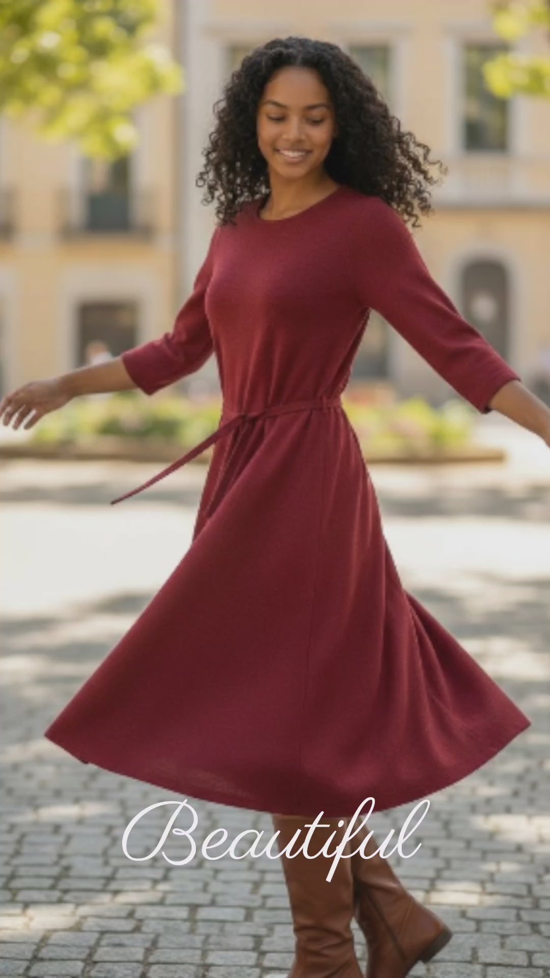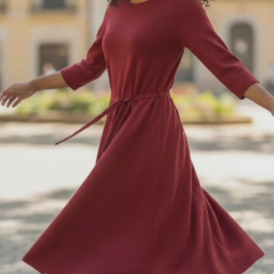 This beautiful upcycled holiday dress can be worn in the office, at an business meeting, a brunch, or casual dinner. This simple yet easy going dress can help you make a statement. With a winter Babydoll flow due to empire cut, its high waisted bodice is accented by a matching knit belt. This dress is suited for all body types. The flared shape enhances your natural curves without being too clinging, giving you a stylish relaxed flattering look.