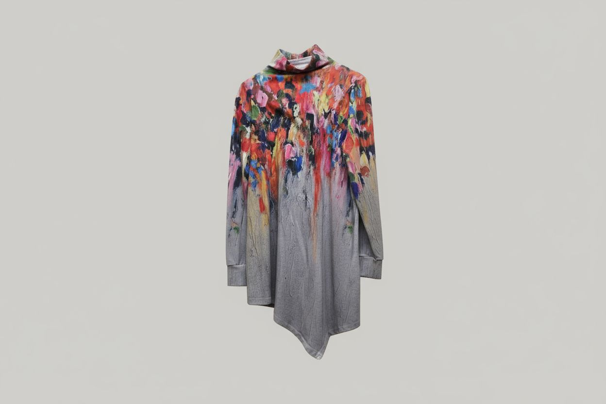 This beautiful, colorful and fun designed top and legging set provides an unique blend of colors that makes folks take notice when you walk into a room Lightweight to get you through warm Fall days and Warm enough for nights in Spring. This casual two piece outfit features a loose fitting top with the asymmetrical hem, matched with ankle-length leggings. This outfit can be worn together or separately.