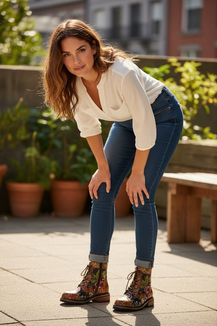 Up-cycled Floral Handpainted Leather Ankle Boots